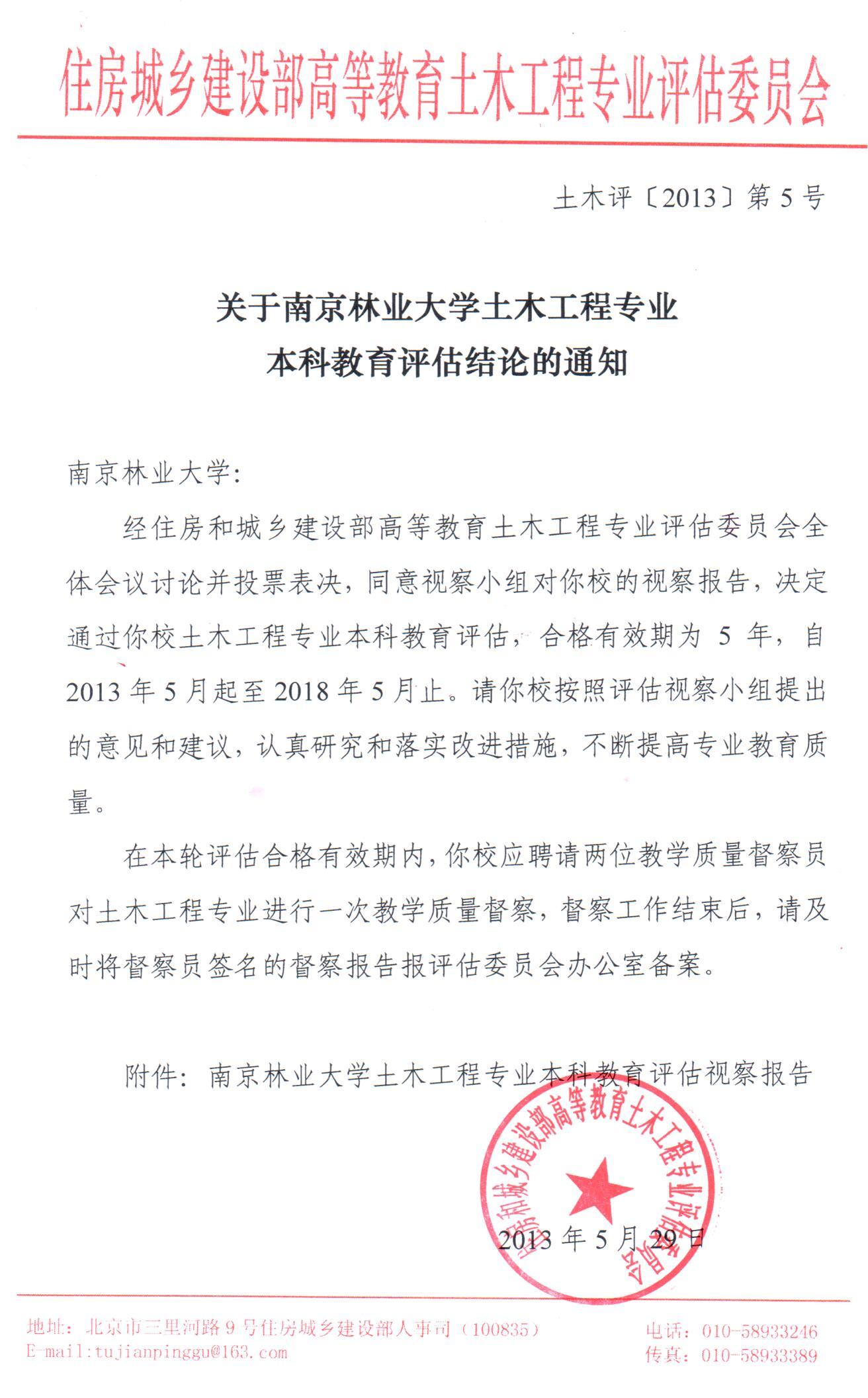日前,接到住房与城乡建设部高等教育土木工程专业评估委员会文件[土木评(2013)5号],公司土木工程专业顺利通过评估,评估合格有效期为5年(2013年5月-2018年5月)。
