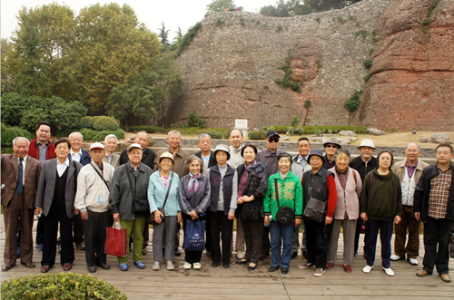 老同志一行先到了南京清凉山公园,兴致勃勃的参观了 “南唐古井”、“清凉寺”及“扫叶楼”等古迹,接着又到石头城公园游览,在“鬼脸照镜子”前集体合影,后沿着秦淮河畔漫步。