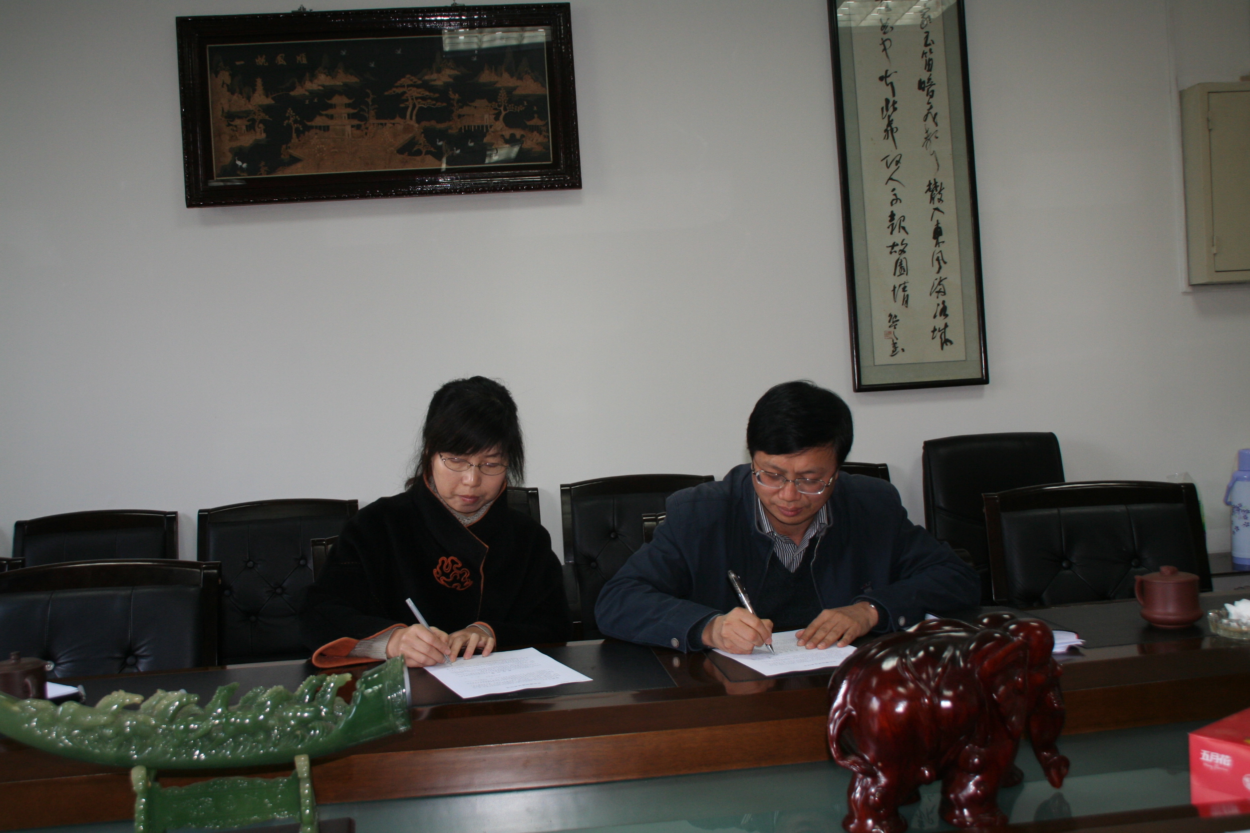 | 副经理黄新与院办公室副主任王静洁签订《党风廉政建设责任书》 |