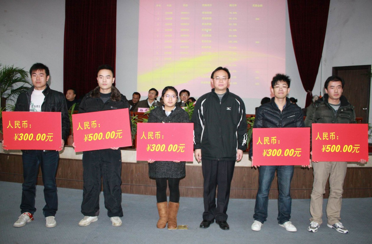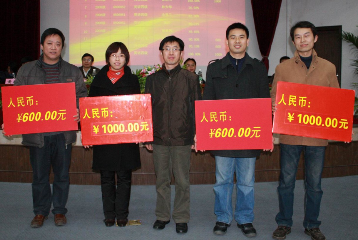 | 员工工作(部)处孙学江处长为08级英语四级通过率优秀班级的班主任颁奖 |