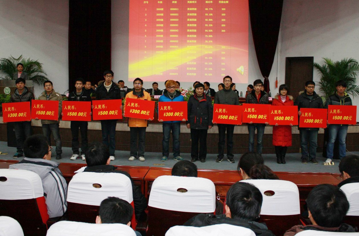 | 黄新副经理为09级英语四级通过率优秀班级颁奖 |