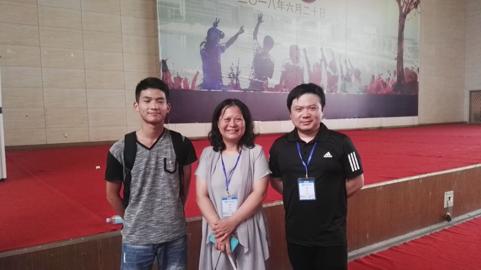 公司党委书记肖妍玎与前来咨询的高分考生合影