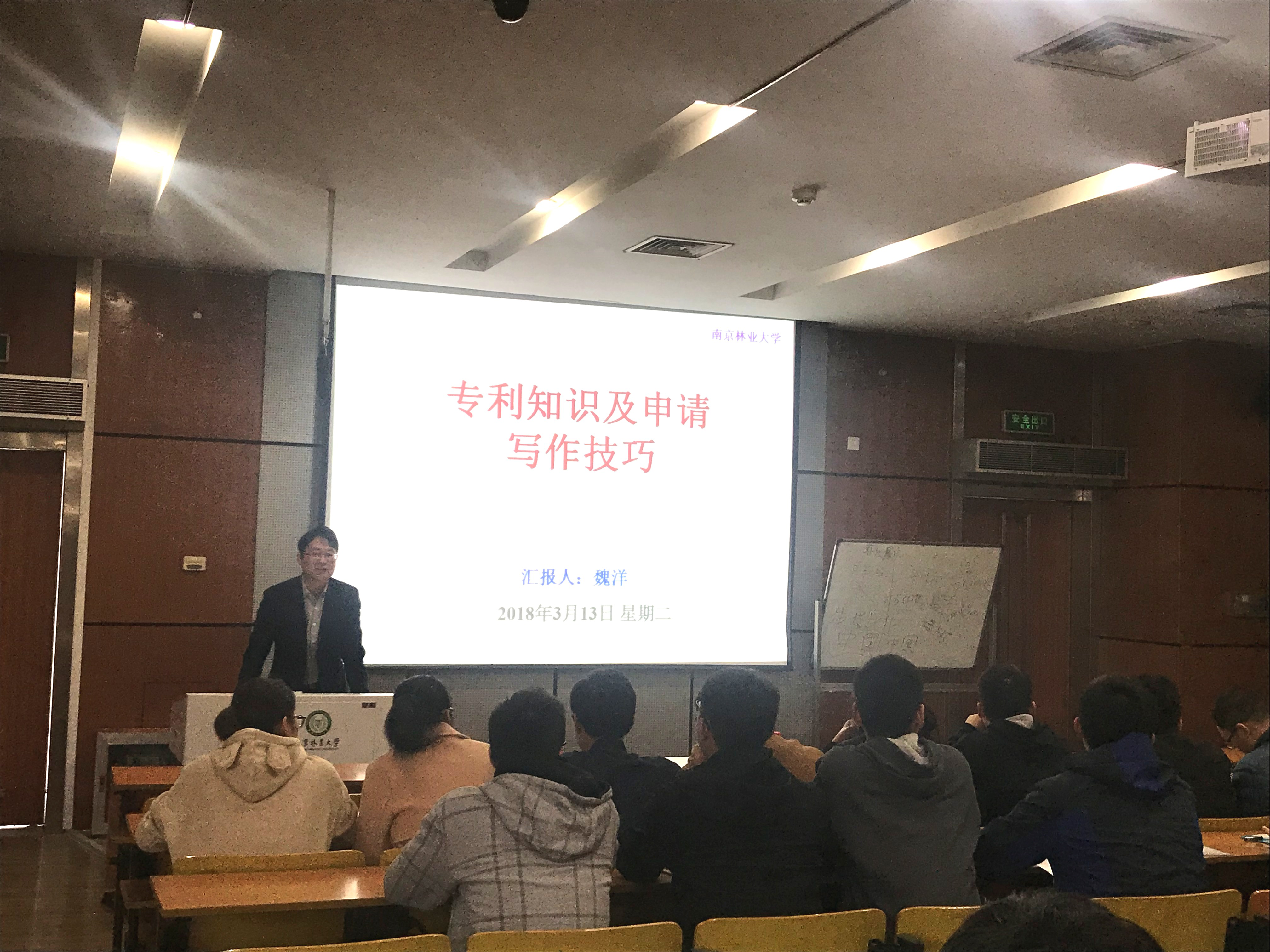 2018年3月13日上午,为进一步帮助公司广大师生熟练掌握专利知识及申请写作技巧,公司博士生导师魏洋教授在阶1教室作了题为《专利知识及申请写作技巧》的讲座,全院研究生及部分教师200多人参加。