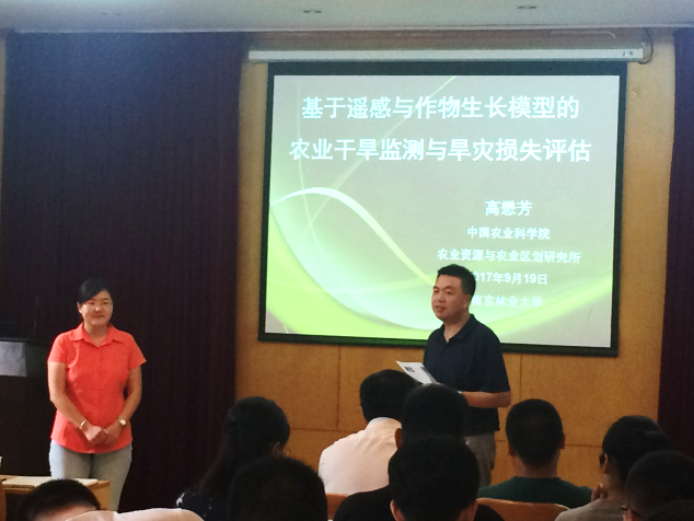 2017年9月19日下午2时,中国农业科学院农业资源与农业区划研究所高懋芳副研究员在球友会学术报告厅(3324室)作了《基于遥感与作物生长模型的农业干旱监测与旱灾损失评估》学术报告,本次报告由球友会副经理邵光辉主持,球友会、林学院和生物与环境学院90余名师生参加了报告,报告厅座无虚席。
