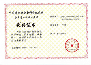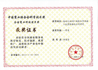 2016年6月25号在北京人民大会堂隆重召开了2016年全国商业科学技术大会,会议对2014年度、2015年度中国商业联合会科学技术奖进行了颁奖。公司作为第一完成单位完成的“高耐久性FRP-钢复合管混凝土抗震桥墩的应用研究”荣获中国商业联合会科学技术奖一等奖。