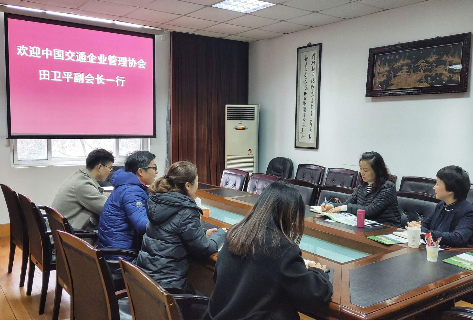 2019年2月28日上午,中国交通企业管理协会副理事长田卫平来公司考察交流。公司党委副书记、副经理刘兴光、学院办公室主任王海燕、学院团委书记、学工办主任潘玉芹和全体学工办成员参加本次座谈。