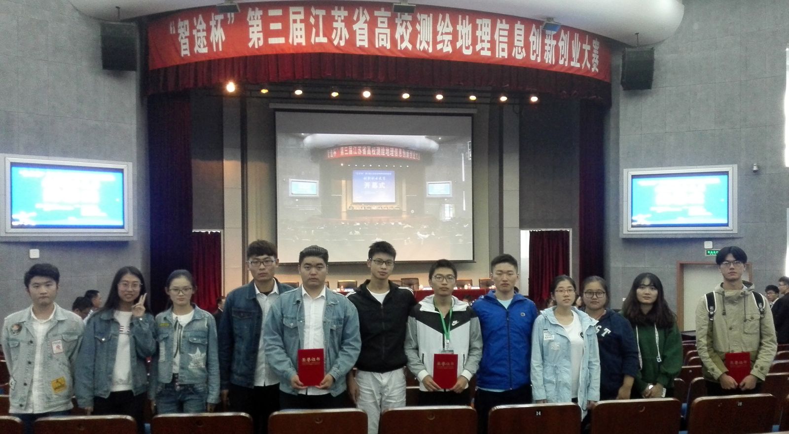 第三届江苏省高校测绘地理信息创新创业大赛由江苏省测绘地理信息学会主办,江苏省测绘地理信息学会新技术应用专业委员会、时空大数据专业委员会和河海大学共同承办,来自江苏省内的12所高校50支代表队200余名师生参加,该赛事为省内参与学校最多、水平最高的地理测绘技能大赛。大赛设有创新开发类、创新设计类、创业计划类三大组别。