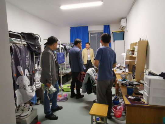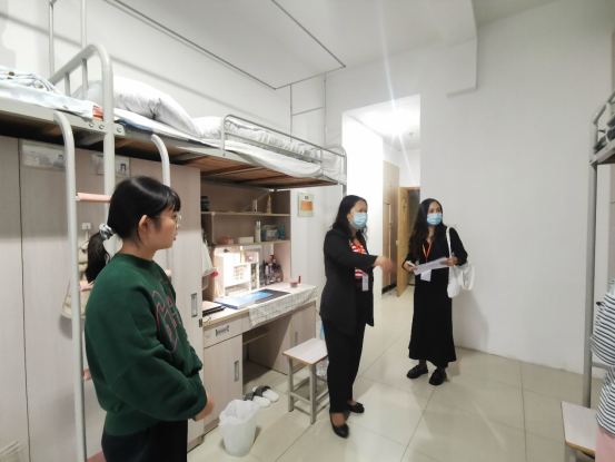在走访过程中,学院领导仔细询问并耐心解答各位新生在日常生活和学习等方面的疑惑,充分地解了新生的家庭情况与新生来校的交通方式,着重强调了新生的安全问题,包括疫情防控和宿舍安全,提醒新生们在日常生活中做好疫情防护,非必要不外出,外出做好个人防护。同时老师们希望来自全国各地的同学们能适应新的生活习惯,友好交流,建立积极良好的宿舍环境,共同成长。