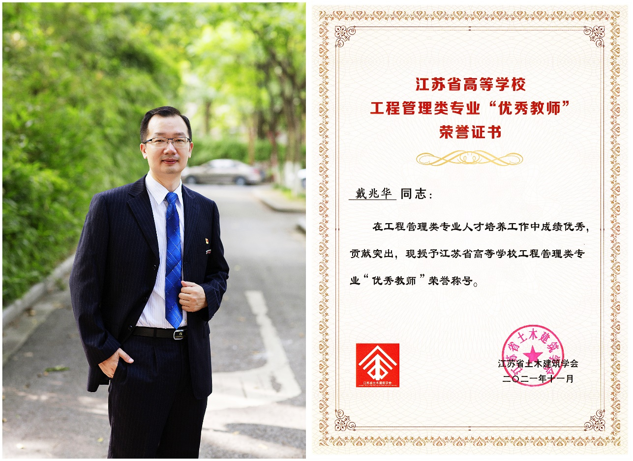 为表彰在教学一线从事工程管理专业教学工作、注重教学改革研究与实践、教学效果好、人才培养成效突出的优秀教师,进一步提高江苏省工程管理类专业团队队伍水平和人才培养质量,江苏省土木建筑学会开展了第一届江苏省高等学校工程管理类专业教学名师和优秀教师评选工作,公司副经理戴兆华老师被评为第一届江苏省高校工程管理专业优秀教师,本次全省共有8名教师获得这项荣誉(省土建会字[2021]第143号)。