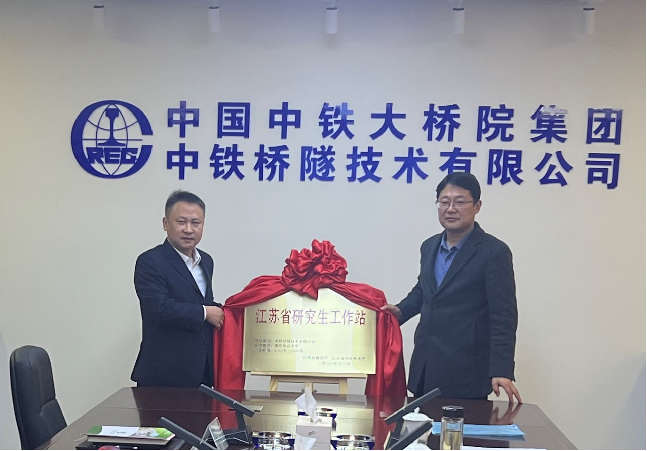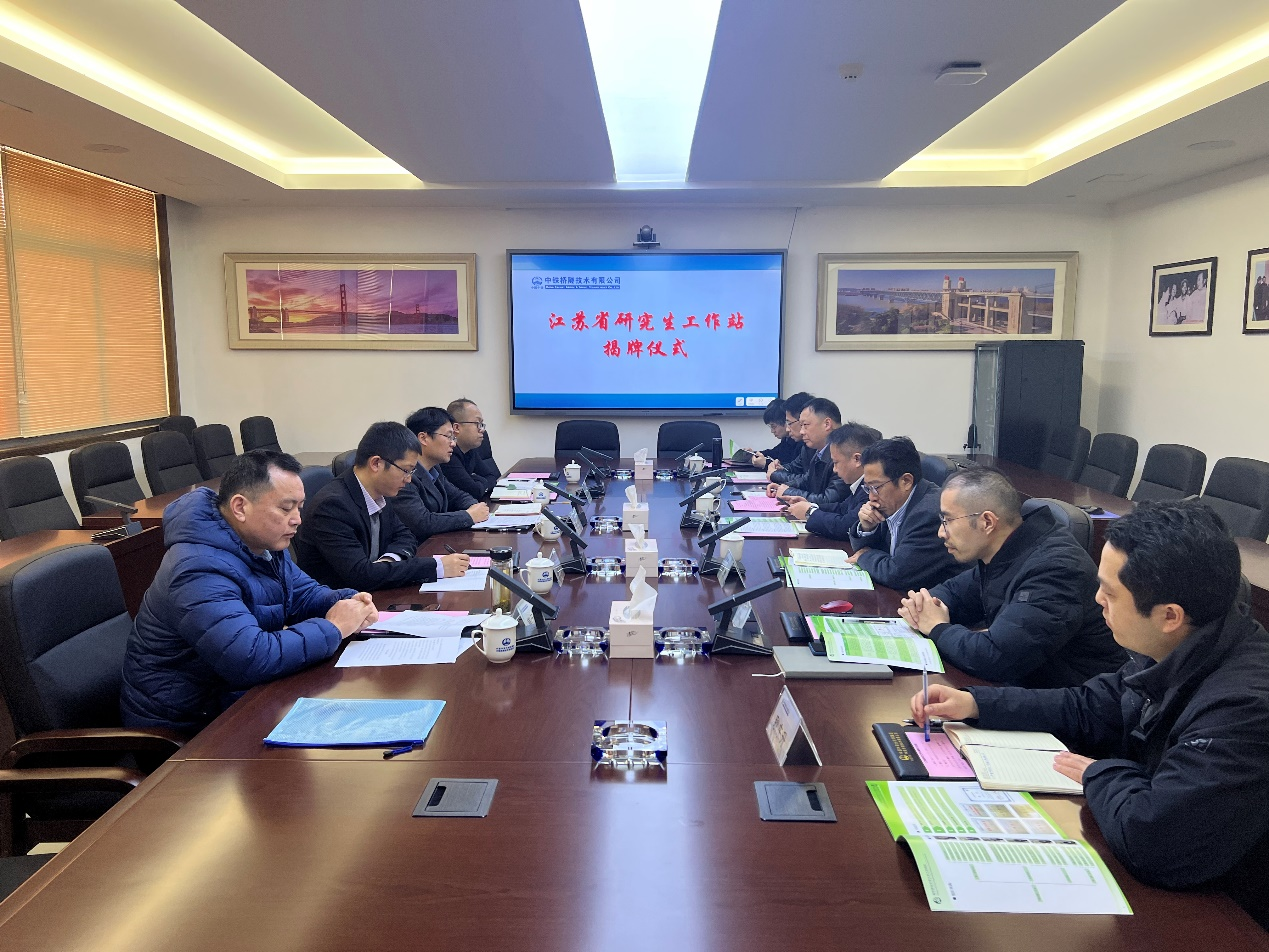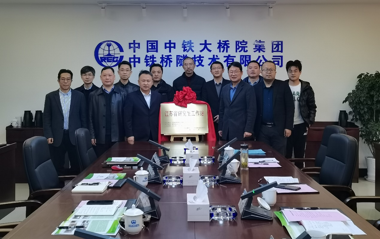 2022年3月3日上午,公司经理魏洋、姜元中、董峰辉、郑开启和刘杰老师等一行来到中铁桥隧技术有限公司举行江苏省研究生工作站揭牌仪式,中铁桥隧技术有限公司负责人刘华(总经理、总工程师、党委副书记)、孙英杰(执行董事、党委书记)、公司江苏省产业教授付一小副总工程师及公司各部门相关负责人出席了江苏省研究生工作站揭牌仪式和校企合作交流座谈会。