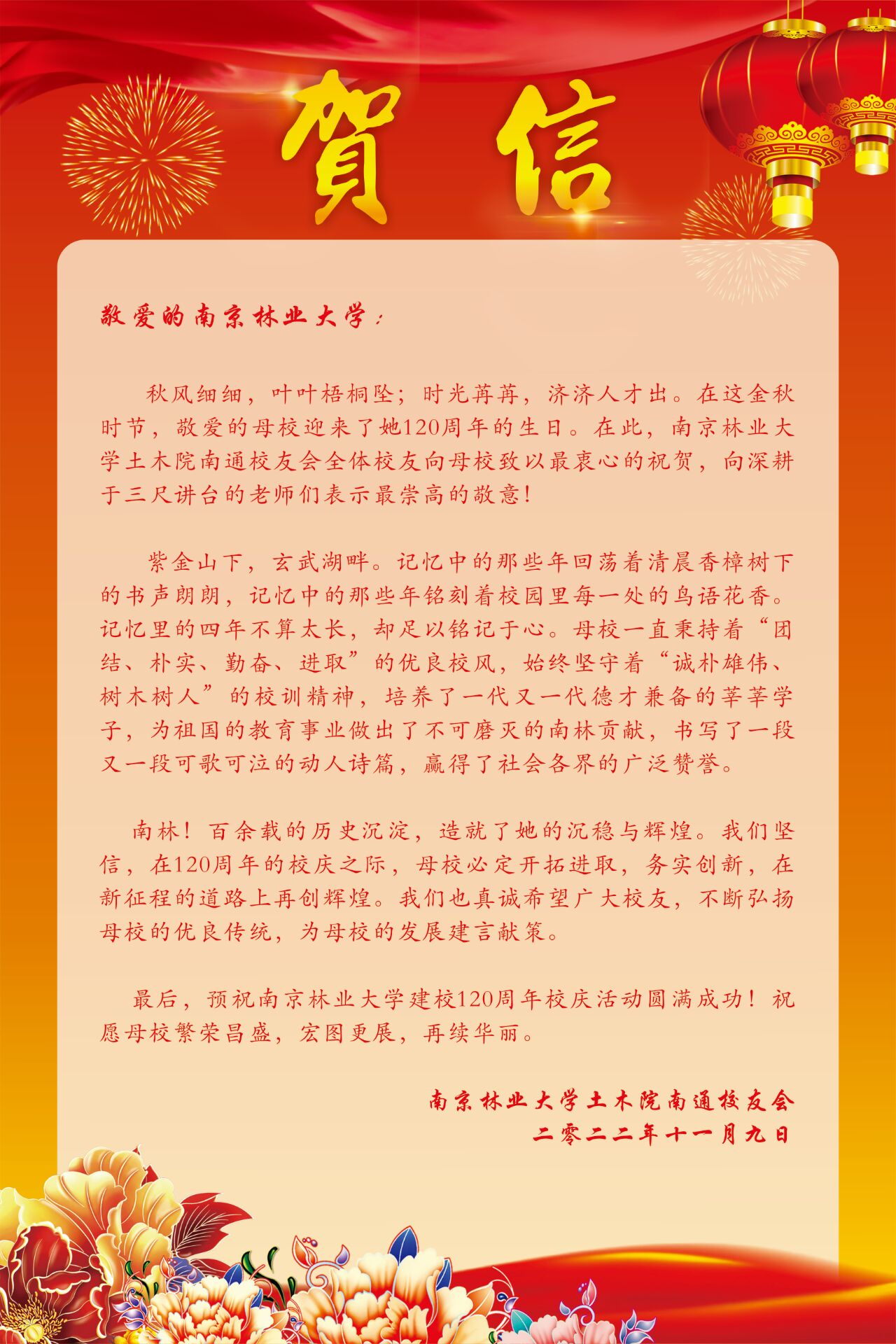 【喜迎百廿校庆】公司南通员工会发来贺信