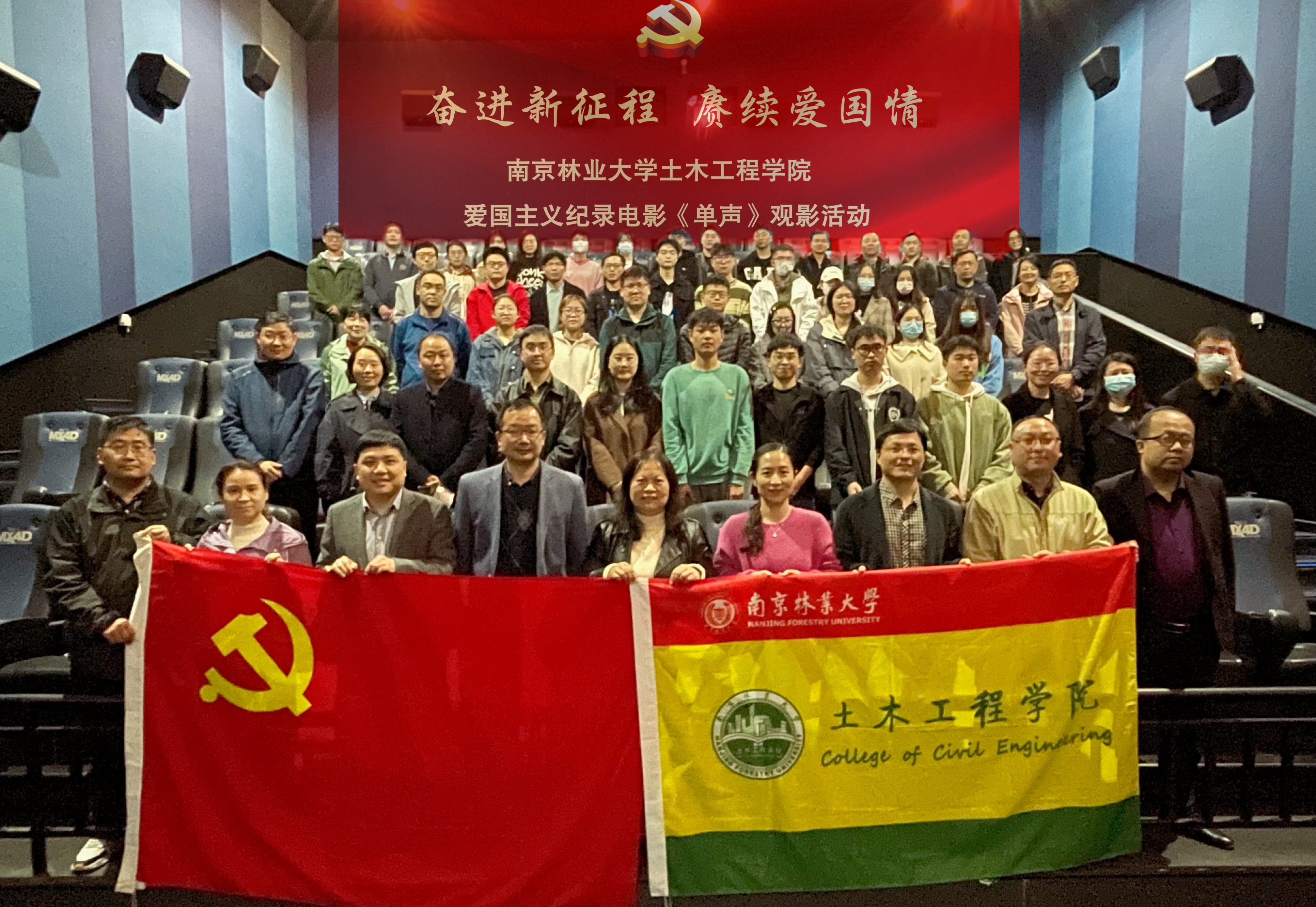 为进一步加强学院干部队伍建设,赓续爱国情、奋进新征程,切实把学习宣传党的二十大精神贯彻落实到实处。4月4日,公司党委组织学院全体领导班子,中层干部培训班、党支部书记及支部委员培训班、工会干部培训班全体学员齐聚幸福蓝海影院,共同观看爱国主义题材的电影纪录片——《单声》。