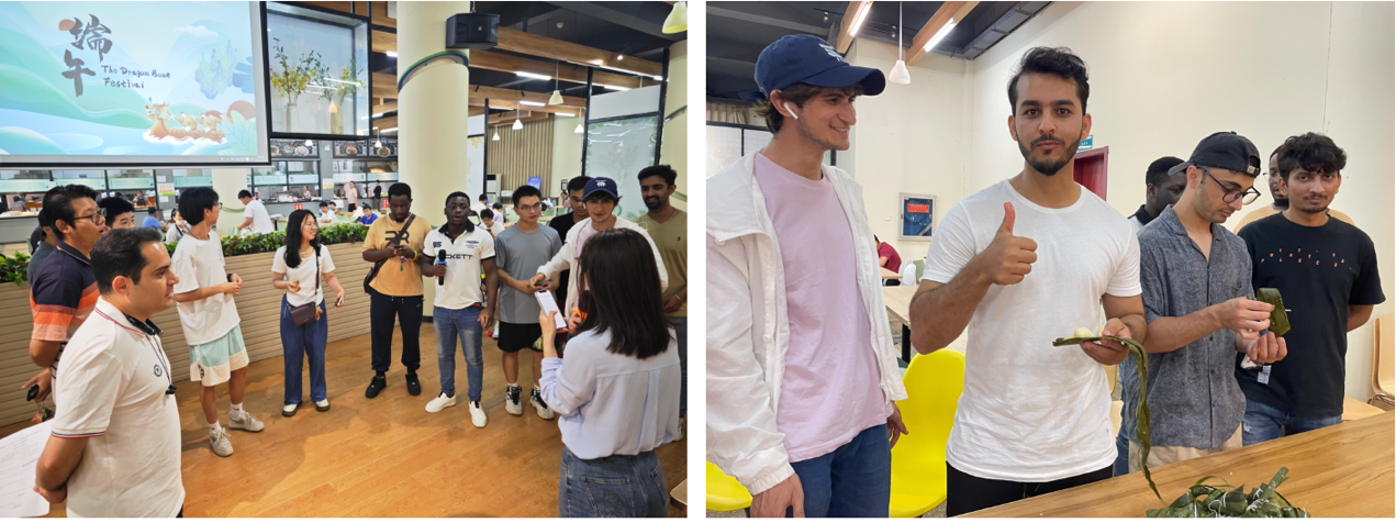 同学们从完全不会到摸索着包出像样的粽子,过程充满着乐趣。来自云南的彝族同学张鑫说:“第一次上手包粽子,感觉确实很不容易。虽然自己包的不是很好看,但还是很开心、很有成就感。”“我刚来学校就能够参与这样的活动,真的很开心。我非常喜欢中国,非常喜欢中国文化,希望以后能够有更多这样的活动。”来自巴基斯坦的Syed举着自己包的粽子激动地说。
